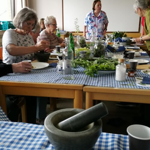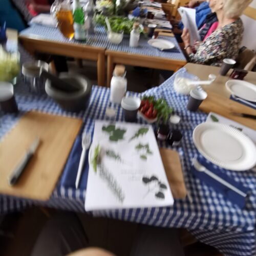 Kräuterworkshop Unter fachkundiger Anleitung haben wir allerhand verschiedene Kräuter verarbeitet. Den Kuchen hat Christine allerdings zu Hause gebacken…